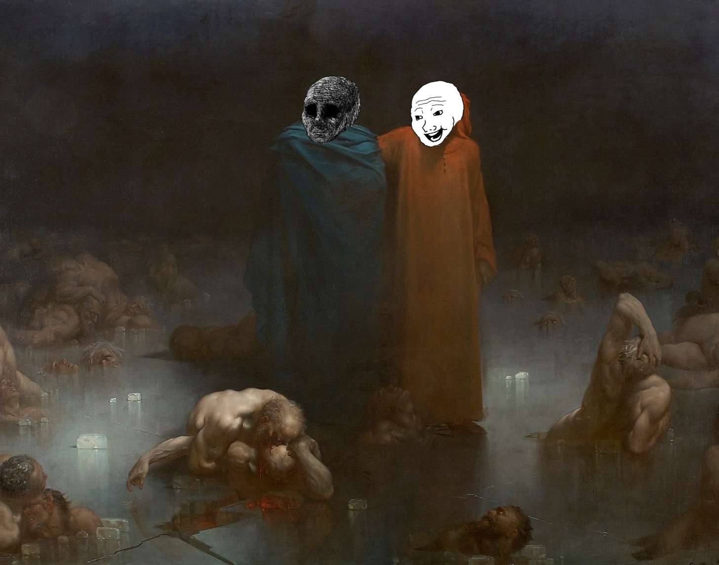 Probably Gustave Doré, Wojaks at the Global Death OrgyAny word, thought the ancient man, is like a spell—say it right and you’ll bewitch, heal, curse, or worse yet, without any ulterior motive, with just one word you’ll turn the world arse over tit like with a nuclear bomb. Boom! Bang! Ba-bam! Right then, you’re fucked, cunts, thought the ancient man of those around him, and became a spell-caster.