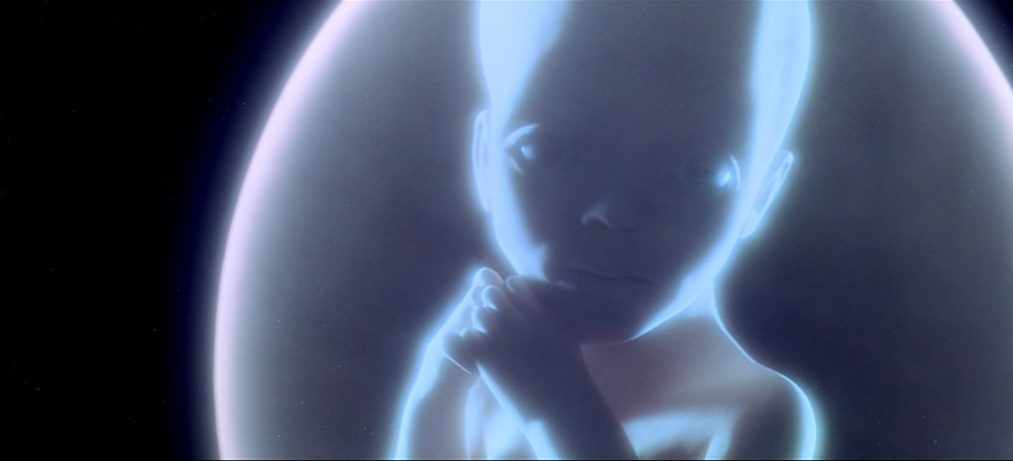 The famous embryonic “Starchild” from “2001: A Space Odyssey”.In “Solaris”, the pilot Berton describes a giant newborn child with blue eyes that he saw on the surface of the Solaris ocean: