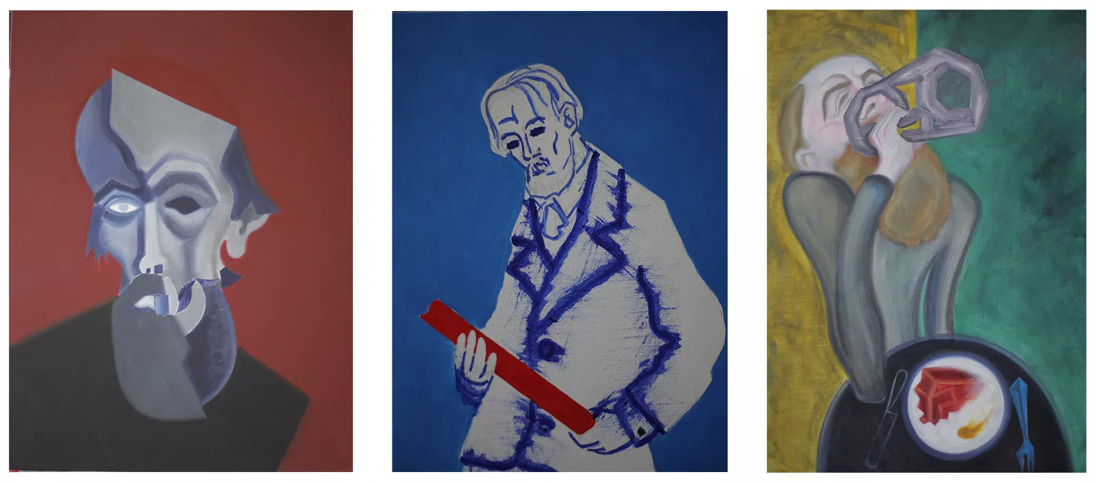 Sorokin isn’t only a writer but a painter. He began his artistic career in the 1970s among Moscow conceptualists and worked as a book illustrator, but, after many years focusing on literature, returned to visual arts in 2013 after feeling creatively drained from writing his novel “Telluria”. In 2017, in Tallinn, Estonia, his exhibition “Three Friends” showcased 19 canvases and 7 graphic works, each deliberately executed in different styles.